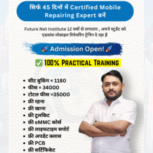High Demand Wala Career: Har din naye mobile models aate hain aur repairing experts ki zaroorat badhti ja rahi hai. ✅ Kam Lagat, Zyada Kamai: Kam investment mein aap ek profitable career shuru kar sakte hain. ✅ Self-Employment Ka Behtareen Mauka: Apni repairing shop ya service center khol kar aap achha munafa kama sakte hain. ✅ Online aur Offline Support: Course complete hone ke baad bhi aapko free online live classes aur mobile updates milte rahenge.